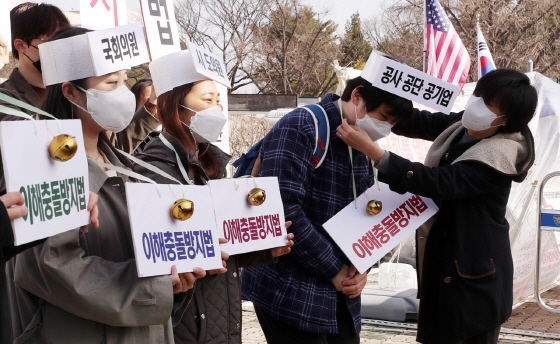 | Âü¿©¿¬´ë, °æÁ¦Á¤ÀǽÇõ½Ã¹Î¿¬ÇÕ, Çѱ¹Åõ¸í¼º±â±¸ ȸ¿øµéÀÌ 16ÀÏ ¿ÀÀü ¼¿ï ¿µµîÆ÷±¸ ±¹È¸ÀÇ»ç´ç ¾Õ¿¡¼ 'Á¦2ÀÇ LH »çŸ¦ ¸·¾Æ¶ó!' ÀÌÇØÃæµ¹¹æÁö¹ý Á¦Á¤ Ã˱¸ ±âÀÚȸ°ßÀ» ¿°í ¹æ¿ï´Þ±â ÆÛÆ÷¸Õ½º¸¦ Çϰí ÀÖ´Ù./»çÁø=¸Ó´ÏÅõµ¥ÀÌ È«ºÀÁø ±âÀÚ |