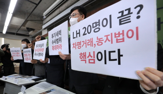 Çã¼úÇÑ ³óÁö¹ýµµ À̹ø »çÅ¿¡ ÇÑ ¸òLH Á÷¿øµéÀÌ »çµéÀÎ ¶¥ÀÇ 98%´Â ³í¹çÀÌ´Ù. ÇöÇà ³óÁö¹ýÀº ÇöÀç ³ó»ç¸¦ Áþ°í Àְųª ³ó»ç¸¦ ÁöÀ» °èȹÀÌ ÀÖ´Â ÀÚ¿¡ ÇÑÇØ ³óÁö ¸ÅÀÔÀ» Çã¿ëÇÑ´Ù. ±ÔÁ¤Àº ÀÌ·¸Áö¸¸ ³ó¾û°æ¿µ°èȹ¼¸¸ Á¦ÃâÇÏ¸é ´©±¸³ª ³óÁö¸¦ ÃëµæÇÒ ¼ö ÀÖ´Ù. ´ç±¹Àº µÚ´Ê°Ô Ä®À» »©µé¾ú´Ù. Á¤ºÎ´Â Áö³ 17ÀÏ 3±â ½Åµµ½Ã Åõ±â ÀǽÉÀÚ·Î 1Â÷ Á¶»çµÈ LH Á÷¿ø 20¸íÀÌ º¸À¯ÇÑ ³óÁö¸¦ °Á¦Ã³ºÐÇϱâ À§ÇØ Æ¯º°Á¶»ç¸¦ ½ÃÀÛÇÏ°Ú´Ù°í ¹àÇû´Ù.