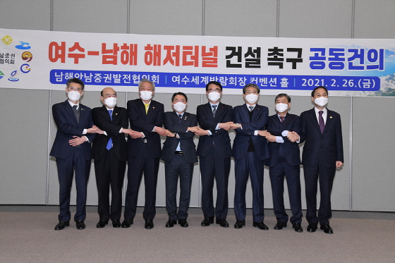 °æ³²½ÃÀ屺¼öÇùÀÇȸ ´ÜüÀåµéÀº '³²ÇØ~¿©¼ö ÇØÀúÅͳΠ°Ç¼³ Ã˱¸ °øµ¿°ÇÀǹ®'À» äÅÃÇϰí Áö³ 18ÀÏ ±âȹÀçÁ¤ºÎ¿Í ±¹Åä±³ÅëºÎ¿¡ °¢°¢ Àü´ÞµÆ´Ù. °ÇÀǹ®¿¡¼´Â "ÇØÀúÅͳÎÀº ±¹Åä±ÕÇü¹ßÀü°ú ½ÇÁúÀûÀÎ µ¿¼ÅëÇÕÀ» ½ÇÇöÇÒ »ç¾÷À̸ç, ¿µÈ£³² Áö¿ª °£ ¿¬°èÇù·ÂÀ» ÅëÇØ »ó»ý¹ßÀüÀÇ ±âÆøÁ¦À̱⠶§¹®¿¡ ¹Ýµå½Ã ¿¬°áµÅ¾ß ÇÑ´Ù"°í ¹àÇû´Ù.