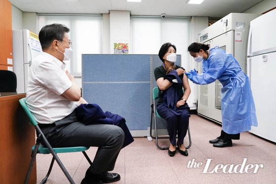 | ¡ã¹®ÀçÀÎ ´ëÅë·ÉÀÌ 23ÀÏ ¼¿ï Á¾·Î±¸º¸°Ç¼Ò¿¡¼ ½ÅÁ¾ Äڷγª¹ÙÀÌ·¯½º °¨¿°Áõ(Äڷγª19) ¿¹¹æÀ» À§ÇÑ ¾Æ½ºÆ®¶óÁ¦³×Ä«(AZ)»çÀÇ ¹é½Å Á¢Á¾À» ¸¶Ä£ ÈÄ ±èÁ¤¼÷ ¿©»çÀÇ Á¢Á¾À» ÁöÄѺ¸°í ÀÖ´Ù. © News1 |