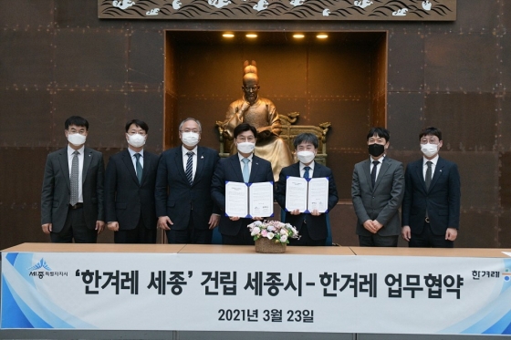 ½Ã´Â 23ÀÏ ½Ãû ÁßÁ¤¿¡¼ ÀÌÃáÈñ ½ÃÀå°ú ±èÇö´ë ÇѰܷ¹½Å¹®¢ß »çÀå µî ¾çÃø °ü°èÀÚ°¡ Âü¼®ÇÑ °¡¿îµ¥ ¡®ÇѰܷ¹ ¼¼Á¾ °Ç¸³À» À§ÇÑ ¾÷¹«Çù¾à(MOU)¡¯À» ü°áÇß´Ù°í ¹àÇû´Ù.