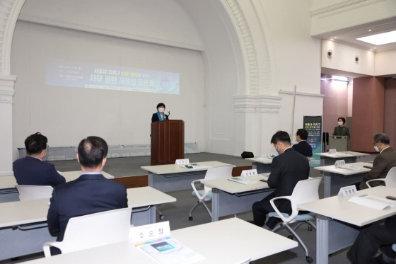 Çмú¹ßÇ¥·Î ÁøÇàµÈ Á¤Ã¥Åä·Ðȸ 2ºÎ¿¡¼´Â ¡°¼¿ï½Ã-ÀÚÄ¡±¸ ±ÇÇÑ ÀçÁ¤¸³ ¹æ¾È: »ç¹«¹èºÐ ±ÇÇÑ ÀçÁ¤¸³¡±À̶ó´Â Á¦¸ñÀ¸·Î Àü±¹½ÃÀ屺¼ö±¸Ã»ÀåÇùÀÇȸ ÀÌ»ó¹ü ¼±ÀÓÀü¹®À§¿ø°ú ¡°¼¿ï½Ã-ÀÚÄ¡±¸ ÀçÁ¤ °ü°èÀÇ ÀïÁ¡°ú Á¤Ã¥ °úÁ¦¡±¶ó´Â ÁÖÁ¦·Î ÇѰæ´ë ÀÌ¿øÈñ ±³¼ö°¡ ¹ßÇ¥¿¡ ³ª¼¹´Ù.