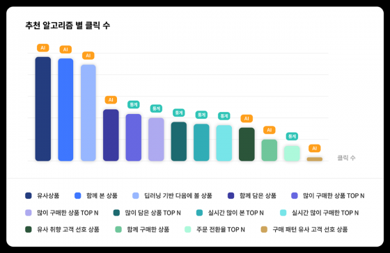 µ¥ÀÌÅÍ ºÐ¼® °á°ú AI °³ÀÎÈ »óǰ ÃßõÀÌ Åë°èÇü Ãßõº¸´Ù Ŭ¸¯Àº ¾à 2.2¹è°¡ ³ô°í ÁÖ¹®¼ö ¿ª½Ã ¾à 2.7¹è°¡ ³ôÀº °ÍÀ¸·Î È®ÀεǾú´Ù.