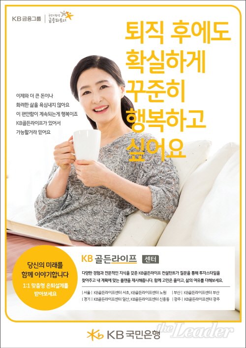 ¡¸KB°ñµç¶óÀÌÇÁ¼¾ÅÍ¡¹´Â ±¹¹Î ¸ðµÎÀÇ ÇູÇÑ ³ëÈÄ»ýȰÀ» Áö¿øÇϱâ À§ÇØ KB±¹¹ÎÀºÇà¿¡¼ ¹«·á·Î ¿î¿µÇÏ´Â ÀºÅðÀÚ»ê°ü¸® Àü¹®»ó´ã¼¾ÅÍÀÌ´Ù. Áö³ÇØ 7¿ù¿¡ ³ë¿ø, ¼ÃÊ, ºÎ»ê, ±¤ÁÖÁö¿ª¿¡ ¼¾Å͸¦ °³¼³Çß´Ù.