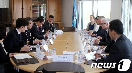 | ¡ã¹Î°©·æ °æÂûûÀåÀÌ 8ÀÏ ÇÁ¶û½º ¸®¿Ë ¼ÒÀç ÀÎÅÍÆú(Interpo¡¤±¹Á¦Çü»ç°æÂû±â±¸) »ç¹«Ãѱ¹À» ¹æ¹®ÇØ À§¸£°Õ ½ºÅå ÀÎÅÍÆú »ç¹«ÃÑÀå°úÀÇ È¸´ãÀ» °®°í ÀÖ´Ù. ¹Î ûÀåÀº À̳¯ ȸ´ã¿¡¼ ¼ö»ç°øÁ¶ ¹æ¾È¿¡ ´ëÇØ ³íÀÇÇß´Ù. (°æÂûû Á¦°ø) |