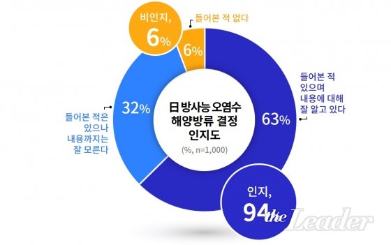ÀÌ¿Í °ü·Ã, ÀϺ» Á¤ºÎÀÇ ¹æ»ç´É ¿À¿°¼ö ÇØ¾ç ¹æ·ù °áÁ¤¿¡ ´ëÇÑ ÀÎÁö ¿©ºÎ¸¦ ¹¯ÀÚ, ¡®µé¾îº» Àû ÀÖÀ¸¸ç ³»¿ë¿¡ ´ëÇØ Àß ¾Ë°í ÀÖ´Ù¡¯´Â ÀÀ´äÀÌ 63%, ¡®µé¾îº» ÀûÀº ÀÖÀ¸³ª ³»¿ë±îÁö´Â Àß ¸ð¸¥´Ù¡¯´Â ÀÀ´äÀÌ 32% µî µµ¹ÎÀÇ 94%°¡ À̹ø »ç¾ÈÀ» ÀÎÁöÇϰí ÀÖ´Â °ÍÀ¸·Î ³ªÅ¸³µ´Ù.