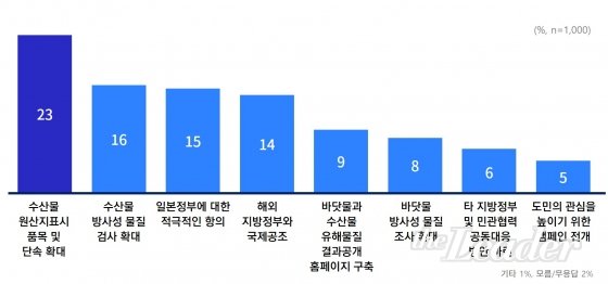 µµ¹ÎµéÀº °æ±âµµÀÇ ´ëÀÀ Á¶Ä¡·Î ¡®¼ö»ê¹° ¿ø»êÁöÇ¥½Ã ǰ¸ñ ¹× ´Ü¼Ó È®´ë¡¯(23%)¸¦ °¡Àå ¿øÇß´Ù. ÀÌ¾î ¡ã¼ö»ê¹° ¹æ»ç¼º ¹°Áú °Ë»ç È®´ë(16%) ¡ãÀϺ» Á¤ºÎ¿¡ ´ëÇÑ Àû±ØÀûÀÎ Ç×ÀÇ(15%) ¡ãÇØ¿Ü Áö¹æÁ¤ºÎ¿Í ±¹Á¦°øÁ¶(14%) µîÀÇ ¼øÀ¸·Î ³ô¾Ò´Ù.