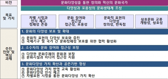À̹ø ±âº»°ÔȹÀ» ¼ö¸³À» »ìÆìº¸¸é ¡®¹®È´Ù¾ç¼ºÀ» ÅëÇÑ Ã¢ÀÇ¿Í Çõ½ÅÀÇ ¹®È±¹°¡¡¯¸¦ ºñÀüÀ¸·Î ÇÑ´Ù. ¹®ÈÀÇ ´Ù¾ç¼º º¸È£ ¹× È®´ë, ¼Ò¼öÀÚÀÇ ¹®È Âü¿©¿Í Á¢±Ù¼º º¸Àå, ¹®È´Ù¾ç¼º °¡Ä¡ È®»ê°ú °øÁ¸±â¹Ý Çü¼ºÀÇ 3´ë ÃßÁø Àü·«À» ¼¼¿ü´Ù.
