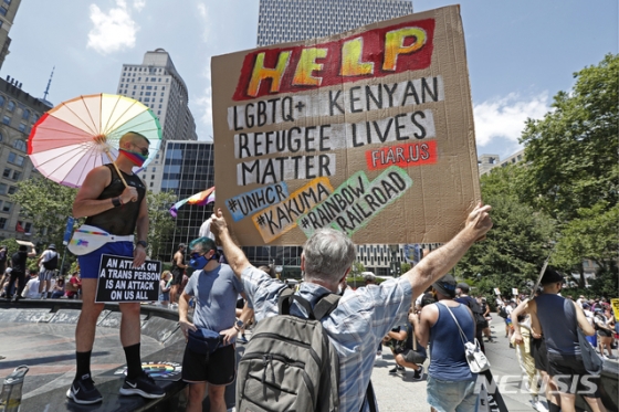 | ¡ã[´º¿å=AP/´º½Ã½º]28ÀÏ(ÇöÁö½Ã°£) ¹Ì±¹ ´º¿å¿¡¼ ÇÁ¶óÀ̵å ÇàÁøÀÌ ¿·Á ÇÑ Âü°¡ÀÚ°¡ LGBTQ¿Í ÄÉ³Ä ³¹Î¿¡ °ü½ÉÀ» Ã˱¸ÇÏ´Â ÆÖ¸»À» µé°í Äû¾î ÇØ¹æ ÇàÁø¿¡ µ¿ÂüÇϰí ÀÖ´Ù. ´º¿å ÇÁ¶óÀ̵å ÇàÁø 50ÁÖ³âÀ» ¸Â¾Æ ¿¸° À̹ø Çà»ç´Â ½ÅÁ¾ Äڷγª¹ÙÀÌ·¯½º °¨¿°Áõ(Äڷγª19) È®»ê ¿ì·Á·Î ±Ô¸ð°¡ ¸¹ÀÌ Ãà¼ÒµÆ´Ù./2020.06.29. |