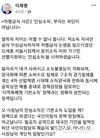 ÀÌÀç¸í Áö»ç´Â 28ÀÏ ÆäÀ̽ººÏ¿¡ "¾È½É¼ÒµæÀº Àú¼ºÀå ¾ç±ØÈ ½Ã´ë¿¡ ¸ÂÁö ¾Ê´Â ±Ù½Ã¾ÈÀû ó¹æ"À̶ó¸ç À̰°ÀÌ ÁöÀûÇß´Ù.