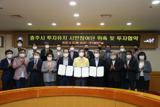 Á¶±æÇü ÃæÁÖ½ÃÀåÀº ¡°¿À´Ã À§Ã˽ÄÀº Áö¿ª¹ßÀüÀ» À§ÇØ ±¸¼ºµÈ ÅõÀÚÀ¯Ä¡ ½Ã¹ÎÂü¿©´Ü°ú ÇÔ²² ÃæÁÖ·Î ÅõÀÚ¸¦ °áÁ¤ÇÑ µÎ ±â¾÷ÀÇ Çù¾à½ÄÀ» ÃàÇÏÇÏ´Â ¸Å¿ì ¶æ±íÀº ÀÚ¸®¡±¶ó¸ç, ¡°ÃæÁֽô ½Ã¹ÎÂü¿©´ÜÀÇ Áö¿ª¿¡ ´ëÇÑ ¾ÖÁ¤°ú Æø³ÐÀº ÀÎÀûÀÚ»ê µîÀ» Ȱ¿ëÇÏ¿© ¿ì·®±â¾÷ À¯Ä¡¿¡ ÃÖ¼±À» ´ÙÇϰí, ÃæÁÖ¿¡ »õ µÕÁö¸¦ Ʋ µÎ ±â¾÷ÀÌ À̸¥ ½ÃÀÏ ³»¿¡ ÀÚ¸® ÀâÀ» ¼ö ÀÖµµ·Ï ÇàÁ¤Àû Áö¿øÀ» ¾Æ³¢Áö ¾Ê°Ú´Ù¡±°í ¸»Çß´Ù.