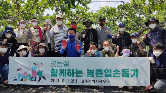 ¿À´Ã Àϼյ½±â´Â ÃÖÃæÁø ûÁÖ½ÃÀÇȸ ÀÇÀåÀ» ºñ·ÔÇÑ ÀÇȸ»ç¹«±¹ Á÷¿ø 20¿© ¸íÀÌ Âü¿©ÇØ »ó´ç±¸ ³¶¼º¸é Àΰ渮 ³ó°¡¸¦ ã¾Æ, ¹è ¼Ô¾ÆÁÖ±â¿Í Æ÷µµ °ç¼øµû±â ÀÛ¾÷¿¡ ±¸½½¶¡À» Èê·È´Ù.