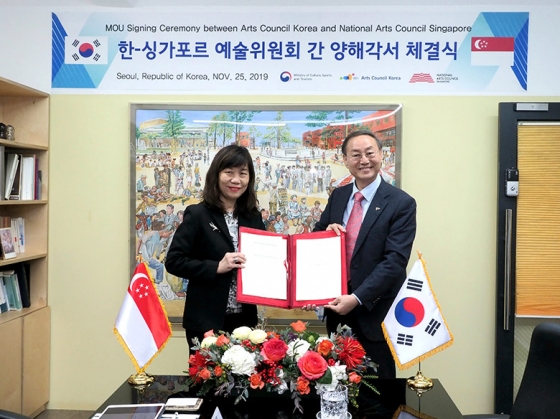 | ¡ãÇѱ¹¹®È¿¹¼úÀ§¿øÈ¸(ÀÌÇÏ ¿¹¼úÀ§)¹ÚÁ¾°ü À§¿øÀåÀÌ ±¹¸³½Ì°¡Æ÷¸£ ¿¹¼úÀ§¿øÈ¸(National Arts Council Singapore, ÀÌÇÏ NAC)¿Í MOU¸¦ ü°áÇÑ ÈÄ ±â³äÃÔ¿µÀ» Çϰí ÀÖ´Ù./»çÁø=Çѱ¹¹®È¿¹¼úÀ§¿øÈ¸ |