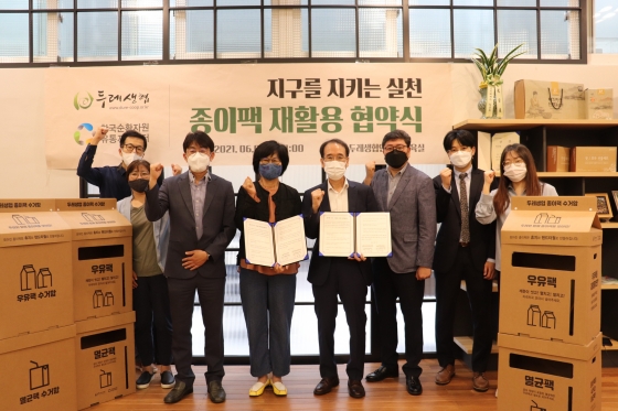 À¯ÅëÁö¿ø¼¾ÅÍ´Â µÎ·¹»ýÇù°ú °øµ¿À¸·Î ÃßÁøÇÏ´Â À̹ø Á¾ÀÌÆÑ ¼ö°Å»ç¾÷ÀÌ Á¾ÀÌÆÑ ºÐ¸®¹èÃâ¿¡ ´ëÇÑ ±¹¹Î ÀνÄÀ» Á¦°íÇÏ´Â °è±â°¡ µÉ °ÍÀ̶ó°í ±â´ëÇϰí ÀÖÀ¸¸ç, µÎ·¹»ýÇù¿¡¼´Â À̹ø »ç¾÷À» ÅëÇØ ¿¬°£ ¾à 20ÅæÀÇ Á¾ÀÌÆÑÀ» ¼ö°ÅÇÏ´Â ¼º°ú¸¦ °ÅµÑ °ÍÀ̶ó´Â ±â´ë¿Í ÇÔ²² ¡®Çùµ¿ÀÇ °¡Ä¡¸¦ ³ôÀ̰í, À¯±âÀûÀÎ »îÀ» ÀüÆÄÇÑ´Ù¡¯´Â µÎ·¹»ýÇùÀÇ ºñÀüÀ» ³ÐÇô ³ª°¡°Ú´Ù°í ¹àÇû´Ù.