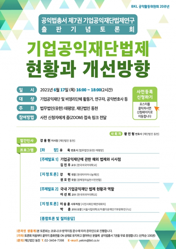 Åä·Ðȸ Âü¿©¸¦ Èñ¸ÁÇÏ´Â »ç¶÷Àº ±¸±ÛÆû(https://url.kr/f63h4i)¿¡¼ Âü°¡ ½Åû °¡´ÉÇϸç, ½ÅûÇÑ À̸ÞÀÏ·Î Åä·Ðȸ ´çÀÏ ÁÜ ¸µÅ©¿Í ÀÚ·áÁýÀ» ¹ß¼ÛÇÒ ¿¹Á¤À¸·Î Åä·Ðȸ Âü¼®ÀÚ¿¡°Ô´Â °øÀ͹ýÃѼ 7±ÇÀ» ¹«·á·Î Àü´Þ¹ÞÀ» ±âȸ°¡ Á¦°øµÈ´Ù. ÀÚ¼¼ÇÑ ³»¿ëÀº Àç´Ü¹ýÀÎ µ¿Ãµ ȨÆäÀÌÁö °øÁö»çÇ׿¡¼ È®ÀÎÇÒ ¼ö ÀÖ´Ù.