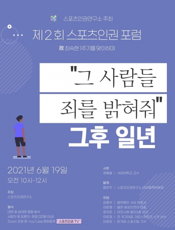 Æ÷·³Àº ÇÔÀºÁÖ ½ºÆ÷Ã÷Àαǿ¬±¸¼Ò ´ë¿ÜÇù·ÂÀ§¿øÀåÀÌ ¹ßÁ¦ÀÚ·Î. ±èÁ¾¿ì º¯È£»ç(¹ý¹«¹ýÀÎ ¼»ó), ¿©ÁØÇü ´ëÇ¥(ÀþÀº ºù»óÀο¬´ë), Á¤ÁöÀº ¼±¼ö(´ëÀü½Ãû öÀÎ3Á¾ÆÀ), ÀÌÀº°æ ¼±¼ö(Àü Å©·Î½ºÄÁÆ®¸® ½ºÅ° ±¹°¡´ëÇ¥), ÀÌÁØÈñ ±âÀÚ(ÇѰܷ¹½Å¹®)°¡ Åä·ÐÀÚ·Î Âü¿©ÇÑ´Ù.