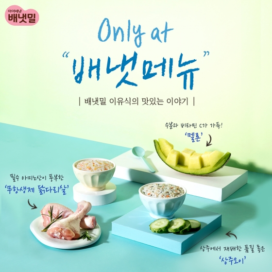 ºÎ¸ðÀÇ ¸¶À½À» °ø°¨ÇÏ°í ¾ÆÀ̸¦ ÀÌÇØÇÏ´Â ¡®¹è³Á¹Ð¡¯Àº ¾ÆÀ̸԰Ÿ®¿¡ ´ëÇÑ Áø½É°ú ¼ø¼öÇÑ ¿Á¤À¸·Î ¿ÀÁ÷ ¿ì¸® ¾ÆÀÌ °Ç°À» À§ÇÑ ¸Þ´º °³¹ß¿¡ ÃÑ·ÂÀ» ±â¿ïÀδÙ. ¾ÆÀ̵é°ú ºÎ¸ðµéÀÌ Áö¼ÓÀûÀ¸·Î ¸À°ú ¿µ¾çÀ» Áñ±æ ¼ö ÀÖµµ·Ï Á¦Ã¶ ½ÄÀç·á³ª Æ¯È ¸Þ´º °³¹ßÀ» ÅëÇØ ¸Å´Þ ½Å¸Þ´ºÀÎ ¡®Only at ¹è³Á¸Þ´º¡¯¸¦ °ø°³Çϰí ÀÖ´Ù.