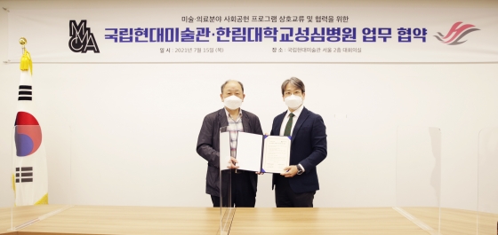 | ¡ã±¹¸³Çö´ë¹Ì¼ú°ü(¿ÞÂÊ, °üÀå À±¹ü¸ð)¿Í ÇѸ²´ëÇб³¼º½Éº´¿ø(¿øÀå À¯°æÈ£)ÀÌ ¾÷¹«Çù¾à ÈÄ ±â³ä ÃÔ¿µÀ» Çϰí ÀÖ´Ù./»çÁø=±¹¸³Çö´ë¹Ì¼ú°ü |
