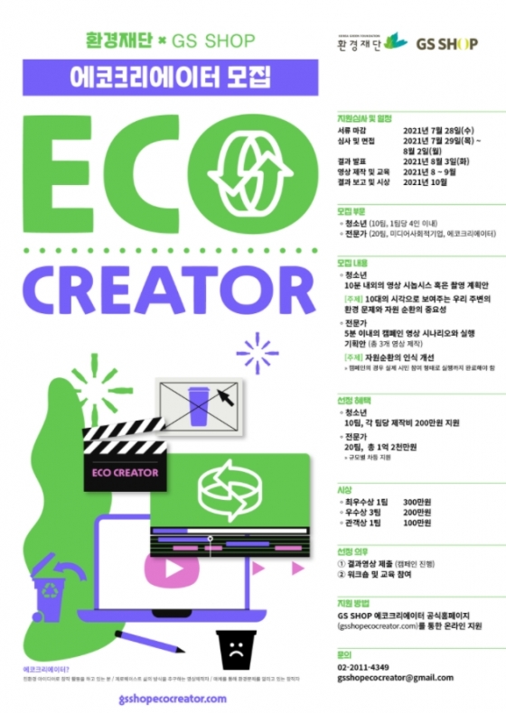 GS¼¥Àº Áö³ÇرîÁö ÁøÇàµÇ¾ú´ø ¡®À¯½º¹Ìµð¾îÅ©¸®¿¡ÀÌÅÍ¡¯ »ç¾÷¿¡¼ ¿ÃÇØ´Â ¸ðÁý ¹Ý°æÀ» ³ÐÇô û¼Ò³â, Àü¹®°¡ µÎ ºÎ¹®À» ¸ðÁýÇÑ´Ù. û¼Ò³â, Àü¹®°¡ µÎ ºÎ¹®ÀÇ ÃÑ Áö¿ø±ÝÀº 1¾ï 4õ¸¸ ¿øÀ¸·Î ȯ°æ ¿µ»ó Á¦ÀÛÀ» À§ÇÑ Áö¿ø±Ý Áö¿ø ¹× ¿µ»ó Á¦ÀÛ ¸àÅ丵 ÇÁ·Î±×·¥µµ Á¦°øÇÑ´Ù.