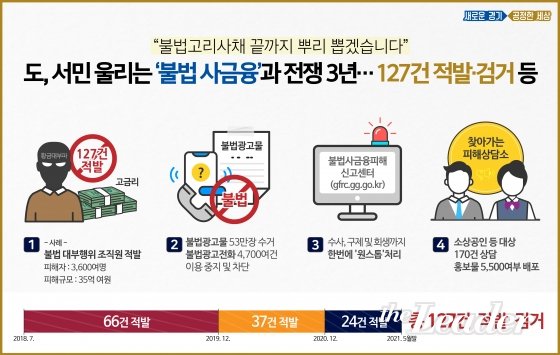 | ¡ã°æ±âµµ°¡ ¼¹Î ´ë»ó Æø¸®¸¦ ÃëÇÏ´Â ºÒ¹ý »çä¾÷ÀÚ µî¿¡ ´ëÇØ 2018³âºÎÅÍ 2020³â±îÁö 3³â µ¿¾È ´ë´ëÀû ¼ö»ç¸¦ ½Ç½ÃÇÑ °á°ú, ´ëºÎ¾÷¹ý À§¹Ý ¹üÁË 127°ÇÀ» Àû¹ß¡¤°Ë°ÅÇÑ °ÍÀ¸·Î ³ªÅ¸³µ´Ù./°æ±âµµ Á¦°ø |
