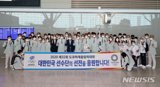 | ¡ã2020 Á¦32ȸ µµÄì ¿Ã¸²ÇÈ¿¡ ÃâÀüÇÏ´Â ´ëÇѹα¹ ¼±¼ö´ÜÀÌ Áö³ 7¿ù 19ÀÏ ¿ÀÀü ÀÎõ±¹Á¦°øÇ׿¡¼ Ãâ±¹ Àü ÆÄÀÌÆÃÀ» ¿ÜÄ¡°í ÀÖ´Ù./ |