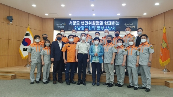 ¼¿µ±³ À§¿øÀåÀº 27ÀÏ ¿ÀÀü ´ëÀü µ¿ºÎ¼Ò¹æ¼¿¡¼ <¼Ò¹æÁ¤Ã¥È¸ÀÇ>¸¦ ÁÖÀçÇØ ¼Ò¹æ°ü°èÀÚµéÀ» °Ý·ÁÇϰí, ¾Ö·Î»çÇ×À» ûÃëÇÏ´Â ÀÚ¸®¸¦ °¡Á³´Ù. ȸÀÇ¿¡´Â ä¼öÁ¾ ´ëÀü¼Ò¹æº»ºÎÀ塤¹Ú¿øÅ ´ëÀüµ¿ºÎ¼Ò¹æ¼À塤ÀÌ¿µÇÐ ÀÇ¿ë¼Ò¹æ´ëÀå µî ´ëÀü ¼Ò¹æÁöµµºÎ°¡ Âü¼®Çß´Ù.