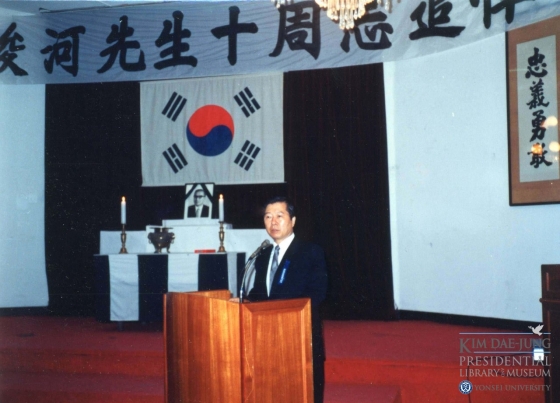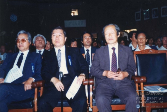 ¿¬¼¼´ë ±è´ëÁßµµ¼°ü(°üÀå ÇѼ®Èñ)Àº ±è´ëÁß ´ëÅë·É ¼°Å 12ÁÖ±â(8¿ù 18ÀÏ)¸¦ ¸ÂÀÌÇØ 1985³â 8¿ù 17ÀÏ ÀåÁØÇÏ ¼±»ý ¼°Å 10ÁÖ±â Ãßµµ½Ä¿¡ Âü¼®ÇÑ ´ç½Ã ±è´ëÁß ¹ÎÁÖÈÃßÁøÇùÀÇȸ(¹ÎÃßÇù) °øµ¿ÀÇÀåÀÇ »çÁø 5ÀåÀ» °ø°³ÇÑ´Ù.