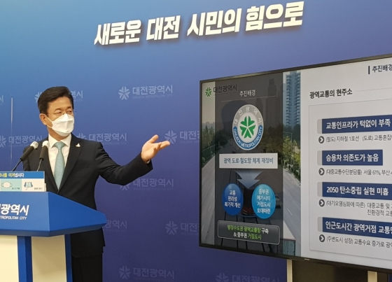 | ¡ãÇãÅÂÁ¤ ´ëÀü½ÃÀåÀÌ 6ÀÏ ¿ÀÀü ½Ãû ±âÀÚȸ°ßÀå¿¡¼ 'ÃæÃ»±Ç ¸Þ°¡½ÃƼ Á߽ɵµ½Ã ´ëÀüÀÇ ±¤¿ª±³Åë¸Á ÀçÆí °èȹ' ¿¡ ´ëÇØ ¼³¸íÇϰí ÀÖ´Ù. /»çÁø=´º½Ã½º |