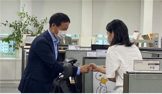 | ¡ãÇѱ¹ÄÜÅ×Ã÷ÁøÈï¿ø Á¶Çö·¡ ½ÅÀÓ ¿øÀåÀÌ Á÷¿ø°ú Àλ縦 ³ª´©°í ÀÖ´Ù./»çÁø=Çѱ¹ÄÜÅÙÃ÷ÁøÈï¿ø |