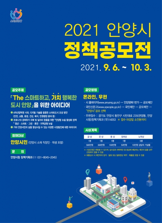 Á¤Ã¥°ø¸ðÀü¿¡ °ü½ÉÀÖ´Â ½Ã¹ÎÀº, ¾È¾ç½Ãû ȨÆäÀÌÁö, ±¹¹Î½Å¹®°í, ¿ìÆí(¾È¾ç½Ã µ¿¾È±¸ ½Ã¹Î´ë·Î 235 ¾È¾ç½Ã Á¤Ã¥±âȹ°ú/¿ìÆí¹øÈ£ 14053)À» ÅëÇØ Âü¿©ÇÏ¸é µÈ´Ù.