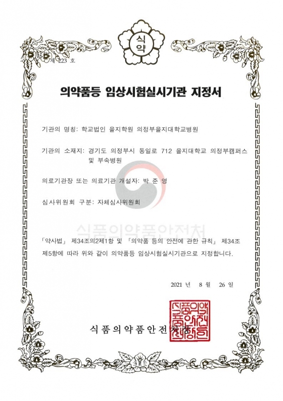 Áö³ 4¿ù ÀÓ»ó½ÃÇè½É»çÀ§¿øÈ¸(IRB)¸¦ Ãâ¹üÇÑ ÀÇÁ¤ºÎÀ»Áö´ëº´¿øÀº ¾à 3°³¿ù°£ ±ÔÁ¤ ¹× ¿î¿µÁöħ ±¸¼º, Àü¹®Àη°ú Àåºñ È®º¸ µî ¸é¹ÐÇÑ Áغñ°úÁ¤°ú ¾ö°ÝÇÑ ½ÇÅÂÁ¶»ç¸¦ °ÅÃÄ Áö³´Þ 31ÀÏ, ½ÄǰÀǾàǰ¾ÈÀüó·ÎºÎÅÍ ¡®ÀǾàǰ ÀÓ»ó½ÃÇè ½Ç½Ã±â°ü ÁöÁ¤¼¡¯¸¦ ȹµæÇß´Ù.