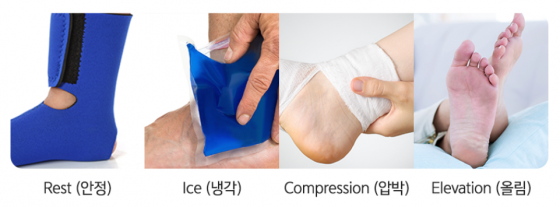 ±Ç¿À·æ Á¤Çü¿Ü°ú Àü¹®ÀÇ(¿¬¼¼½ºÅ¸º´¿ø º´¿øÀå)´Â ¡°ÀÎ´ë ¼Õ»ó µîÀ¸·Î °üÀýÀÌ º×°í ÀÖ´Ù¸é º´¿øÀ» »¡¸® ã¾Æ¾ß ÇÑ´Ù. ÀÀ±Þóġ·Î´Â ºØ´ë·Î ¾Ð¹ÚÇÏ°í ³ÃÂòÁúÀ» ÇÏ¸é¼ ¼Õ»óµÈ ºÎÀ§¸¦ ½ÉÀ庸´Ù ³ôÀÌ µÎ¸é ÁÁ´Ù. Æò¼Ò ±â¾ïÇϸé ÁÁÀ» RICE Ä¡·á ¹æ¹ýÀÌ´Ù. ÈÞ½Ä(Rest), ³ÃÂòÁú(Ice), ¾Ð¹Ú(Compression), ³ôÀ̱â(Elevation)ÀÇ ¾àÀÚ·Î ¼Õ»ó Á÷ÈÄ ÅëÁõ°ú Á¾Ã¢À» °¨¼Ò½Ã۴µ¥ È¿°úÀûÀÎ Ä¡·á¹ýÀÌ´Ù¡±°í ¾Ë·È´Ù.