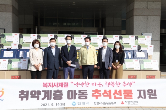 ¾È¾ç½Ã¿Í ¾È¾ç½ÃÁö¿ª»çȸº¸ÀåÇùÀÇü ÁÖ°ü Ãë¾à°¡Á¤ Ãß¼® ¼±¹°²Ù·¯¹Ì Àü´Þ½ÄÀÌ 14ÀÏ ¾È¾ç½Ãû»ç ¾Õ¸¶´ç¿¡¼ ¿·È´Ù.