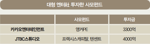 ¿£ÅÍÅ×ÀÎ¸ÕÆ® M&A Çà·Ä¿¡ »ç¸ðÆÝµåÀÇ Âü¿©°¡ Ȱ¹ßÇÑ Á¡µµ ´«±æÀ» ²ø ¸¸ÇÏ´Ù. īī¿À¿£ÅÍÅ×ÀÎ¸ÕÆ®¿Í JTBC½ºÆ©µð¿À ¸ðµÎ »ç¸ðÆÝµå¸¦ ÅëÇØ Á¶´ÞÇÑ ¿ÜºÎÀÚ±ÝÀ» Áß½ÉÀ¸·Î M&A¸¦ ÃßÁøÇß´Ù.