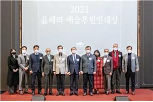 9ȸ¸¦ ¸ÂÀÌÇÑ <2021 ¿ÃÇØÀÇ ¿¹¼úÈÄ¿øÀδë»ó>Àº ÇÑ ÇØ µ¿¾È ¿¹¼úÈÄ¿ø¿¡ ¾ÕÀå¼ ¿Â ±â¾÷°ú °³ÀÎÀ» ¼±Á¤ÇÏ¿© ½Ã»óÇÏ´Â Çà»çÀÌ´Ù. ¿¹¼úÀ§¿øÈ¸´Â 2012³âºÎÅÍ ¿¹¼úÈÄ¿øÀ» Ȱ¼ºÈÇϱâ À§ÇØ ¡®¿¹¼ú³ª¹« ¿îµ¿¡¯À» ¹ßÁ·ÇÏ¿´°í, Àû±ØÀûÀ¸·Î Âü¿©ÇÑ ±â¾÷¿¡°Ô ¡®¿¹¼ú³ª¹« »ó¡¯À» ¼ö¿©ÇؿԴÙ. 2019³âºÎÅÍ´Â ¼ö»ó ºÎ¹®À» ½Å¼³ÇÏ¿© ±â¾÷À» ºñ·ÔÇÑ °³Àΰú ÇÁ·ÎÁ§Æ®¿¡µµ ÈÄ¿øÀÎ ´ë»óÀ» ¼ö¿©Çϰí ÀÖ´Ù.