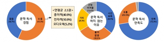 3³â ÁÖ±â·Î ½ÃÇàÇÏ´Â 2021 ¹®ÇÐ ½ÇÅ Á¶»ç°á°ú¿¡ µû¸£¸é, Áö³ 2020³â ±¹¹ÎÀÇ 43%°¡ ¹®ÇÐ µ¶¼ °æÇèÀÌ ÀÖ¾ú°í, Æò±Õ ¹®ÇÐ µ¶¼·®Àº 2.3±ÇÀ¸·Î ±¹¹Î 56.7%°¡ ÀÐÁö ¾Ê´Â °ÍÀ¸·Î Á¶»çµÆ´Ù. ¹®ÈüÀ°°ü±¤ºÎ(Àå°ü ȲÈñ, ÀÌÇÏ ¹®Ã¼ºÎ)´Â Çѱ¹¹®È°ü±¤¿¬±¸¿ø(¿øÀå ±è´ë°ü)°ú ÇÔ²² 2020³âÀ» ±âÁØÀ¸·Î Á¶»çµÈ °á°ú¸¦ 21ÀÏ ¹ßÇ¥Çß´Ù.