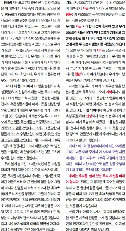 ³ª´Â ¿Ö ¿©·¯ ÆÇº»°ú ¹ø¿ªº»À» ã¾Æ »ìÆìºÃ³ª? ¹®´ÜÀ» ºñ±³Çϱâ À§Çؼ¿´´Ù. ³»°¡ ÀοëÇÑ ¿ø¹®Àº ¹Ì±¹ ±¹¹«ºÎ¿¡¼ ¼±Á¤ÇÑ ÆÇº»À» ÁÖÇÑ ¹Ì±¹´ë»ç°ü °øº¸°ú¿¡¼ ¹ø¿ªÇÑ °ÍÀÌ´Ù. ÀÌ ¿ø¹®Àº ¼¼ ´Ü¶ôÀ¸·Î ±¸¼ºµÇ¾ú´Ù. ÀÌ ¿ø¹®À» º¸¸é ¸µÄÁ ´ëÅë·ÉÀº ³»¿ë ±¸¼º°ú Àü°³¸¦ Àß ÇßÁö¸¸ ´Ü¶ô Çü½Ä¿¡´Â ¼ÒȦÇß´Ù. ´Ü¶ô ±¸ºÐÀº ¿¬¼³¿¡¼´Â ÀǵµÇÑ Àá±ñÀÇ Ä§¹¬ÀÌ´Ù. ±×·± ħ¹¬ÀÌ ¿¬¼³ÀÇ Àü´Þ·Â°ú È£¼Ò·ÂÀ» ³ô¿©ÁØ´Ù.
