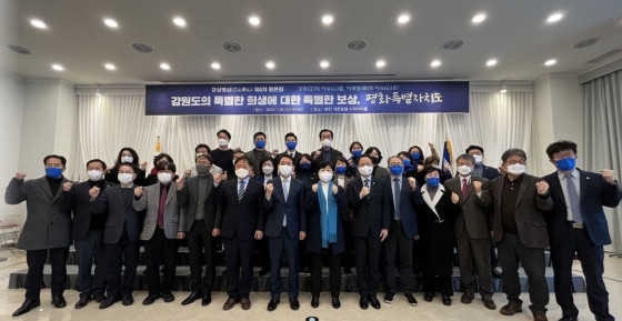 ÇÑÆí, ÀÌÀç¸í È帴 Áö³ 16ÀÏ, °¿øµµ °í¼º ÅëÀÏÀü¸Á´ë¿¡¼ °¿øµµ Áö¿ª°ø¾àÀ» ¹ßÇ¥ÇÑ ¹Ù ÀÖ´Ù. ÁÖ¿ä ³»¿ëÀº ¡®°¿øÆòÈÆ¯º°ÀÚÄ¡µµ ¼³Ä¡¹ý¡¯Á¦Á¤ ÃßÁø/ÆòȰæÁ¦Æ¯º°±¸¿ª ÁöÁ¤/µ¿ÇØ ±¹Á¦°ü±¤ °øµ¿Æ¯±¸ Á¶¼º/ºñ¹«ÀåÁö´ë(DMZ) ÆòÈ»ýŰü±¤ ÃßÁø/±Ý°»ê °ü±¤»ç¾÷ Á¤»óÈ µîÀÌ´Ù.