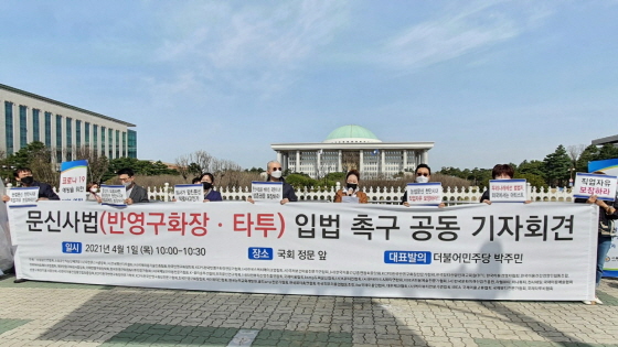 | ´ëÇѹ®½Å»çÁß¾Óȸ ȸ¿øµéÀÌ 2021³â 4¿ù 1ÀÏ ¼¿ï ¿©Àǵµ ±¹È¸ ¾Õ¿¡¼ ¹Ý¿µ±¸ÈÀ塤¹®½Å»ç¹ý Á¦Á¤Ã˱¸ ±âÀÚȸ°ßÀ» Çϰí ÀÖ´Ù./»çÁø=´º½Ã½º |