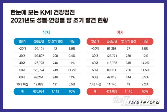 2021³â KMI¿¡¼ °Ç°°ËÁøÀ» ¹ÞÀº ÀοøÀº ÃÑ 113¸¸ 7023¸íÀ¸·Î, ÀÌ °¡¿îµ¥ 2¸¸ 6184¸íÀÌ ¾ÏÀ» Æ÷ÇÔÇÑ ÁßÁõÁúȯ µîÀÌ ÀÇ½ÉµÇ¾î »ó±ÞÀÇ·á±â°ü¿¡ Áø·á°¡ ÀǷڵưí, ÃÑ 2222°ÇÀÌ ¾ÏÀ¸·Î ÃÖÁ¾ È®ÁøµÆ´Ù.