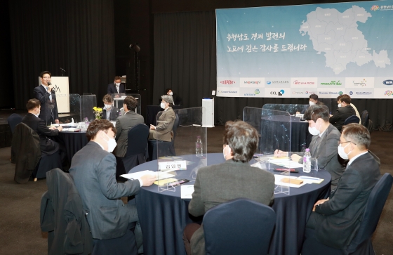| ¡ã¾ç½ÂÁ¶ Ãæ³²Áö»ç°¡ 14ÀÏ ¿ÜÅõ±â¾÷ ´ëÇ¥µé°úÀÇ °£´ãȸ¿¡¼ Àλ縻À» Çϰí ÀÖ´Ù./»çÁø=´º½Ã½º |