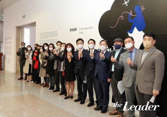 Çã ½ÃÀåÀº Àü½Ã¿¡ Âü¿©ÇÑ 14¸íÀÇ ÀÛ°¡µé¿¡°Ô ÃàÇÏ Àλ縦 ÀüÇÏ°í ¡°°ø¿¹´Â ´Ù¾çÇÑ Àç·á¿Í ±â¼úÀÌ ¸¸³ª »õ·Î¿î °¡Ä¡¿¡ ´«À» ¶ß°Ô ÇÏ°í »îÀ» dz¼ºÇÏ°Ô ÇÏ´Â ¿¹¼úÀÌ´Ù¡±¶ó°í ¸»Çϸç, ¡° ´ëÀü½Ã´Â °ø¿¹ÀÇ °¡Ä¡¸¦ ³Î¸® ¾Ë¸®°í °ø¿¹ ¹®È¡¤»ê¾÷ÀÌ ¹ßÀü ÇÒ ¼ö ÀÖµµ·Ï °ü½É°ú Áö¿øÀ» ¾Æ³¢Áö ¾Ê°Ú´Ù¡±°í µ¡ºÙ¿´´Ù.
