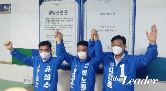 ¶ÇÇÑ, °øÃµ °á°ú ¹ßÇ¥¿¡ ¾Õ¼ ¿ÀÀü 9½Ã 30ºÐ°æ ´õºÒ¾î¹ÎÁÖ´ç À强Áö¿ªÀ§¿øÈ¸¿¡¼ ¼¼ È帰¡ ¸¸³ª ¿øÆÀ ¼±¾ð½ÄÀ» ÁøÇàÇÏ¿´´Ù.