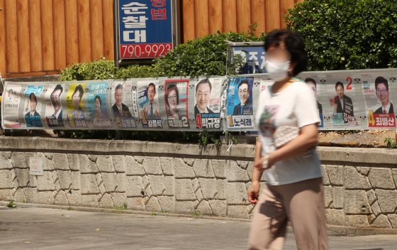 | ¡ãÁ¦8ȸ Àü±¹µ¿½ÃÁö¹æ¼±°Å¸¦ ¾ÕµÐ Áö³ 6¿ù 31ÀÏ ¼¿ï ¿ë»ê2°¡µ¿ Áֹμ¾ÅÍ ¾Õ¿¡ ¼±°Åº®º¸°¡ øºÎµÇ¾î ÀÖ´Ù. /»çÁø=´º½Ã½º |