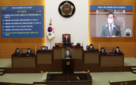 | ¡ã¿À¼¼ÈÆ ¼¿ï½ÃÀåÀÌ 2021³â 6¿ù 15ÀÏ ¿ÀÈÄ Áß±¸ ¼¿ï½ÃÀÇȸ¿¡¼ ¿¸° Á¦301ȸ Á¤·Êȸ Á¦1Â÷ º»È¸ÀÇ¿¡¼ 2021³âµµ Á¦1ȸ Ãß°¡°æÁ¤¿¹»ê¾È¿¡ ´ëÇÑ ½ÃÁ¤¿¬¼³À» Çϰí ÀÖ´Ù./»çÁø=´º½Ã½º |