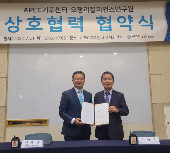 À̹ø ¾÷¹«Çù¾àÀº APEC±âÈļ¾ÅÍ¿Í ¿ÀÁ¤¸®Áú¸®¾ð½º¿¬±¸¿ø °£ÀÇ Çù·ÂÀ» ÅëÇØ ±âÈĺ¯È °ü·Ã »ç¾÷ÀÇ °øµ¿ ÃßÁøÀ» À§ÇÑ Çù·Â ±â¹ÝÀ» ¸¶·ÃÇϰíÀÚ Ã¼°áµÆ´Ù.