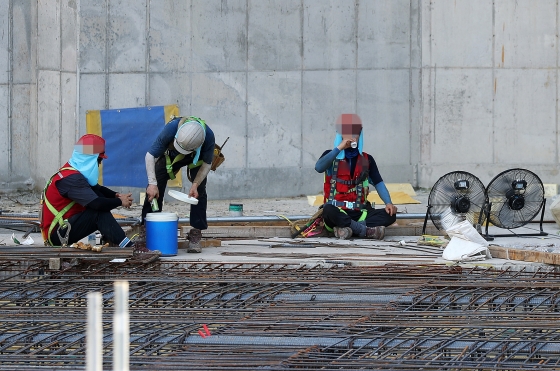 | ¡ã ¿¬ÀÏ Æø¿°ÀÌ À̾îÁö´Â Áö³´Þ 26ÀÏ ÇÑ °Ç¼³ ÇöÀå¿¡¼ °Ç¼³ ³ëµ¿ÀÚµéÀÌ ±×´Ã¿¡¼ ÈÞ½ÄÀ» ÃëÇϰí ÀÖ´Ù./»çÁø=´º½Ã½º |