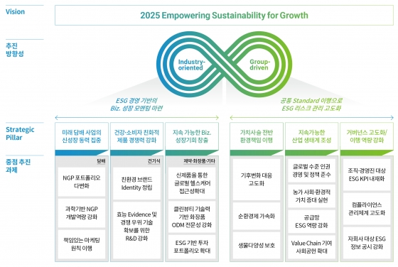 À̹ø º¸°í¼¿¡¼ KT&G´Â ±×·ì»ç¸¦ Æ÷ÇÔÇØ È®´ë °³ÆíÇÑ ¡®2025 ¹Ì·¡¼ºÀå µ¿·Â °È¡¯¶ó´Â ESG ÁßÀå±â ºñÀüÀ» °ø°³Çß´Ù.