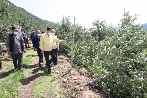 À̳¯ À̼ºÈñ ȸÀåÀº °æºÏ ºÀÈ ¹°¾ß³óÇù°ú Ãá¾ç³óÇù °ü³» »ç°ú ³«°ú ÇöÀå, °æÁÖ °µ¿³óÇù °ü³» Å丶Åä ½Ã¼³ÇϿ콺¿Í ³²Æ÷Ç׳óÇù °ü³» ºÎÃß¡¤½Ã±ÝÄ¡ ½Ã¼³ÇϿ콺 ħ¼ö ÇöÀå µî ³ó¾÷ºÐ¾ß¿¡ ¸¹Àº ÇÇÇØ¸¦ ÀÔÀº Áö¿ªÀ» Â÷·Ê·Î ¹æ¹®ÇÏ¿© ³ó¾÷ÀÎÀ» À§·ÎÇÏ¿´À¸¸ç, ÇÇÇØ¸¶À»¿¡ ÀçÇØ±¸È£Å°Æ®¿Í ¾ç¼ö±â¡¤ÆßÇÁ µî ±ä±Þº¹±¸¹°Ç°À» Àü´ÞÇß´Ù.