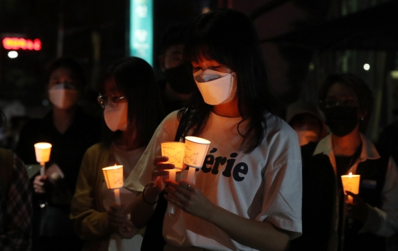 | ¡ã 9¿ù 20ÀÏ ¿ÀÈÄ ¼¿ï Áß±¸ ½Å´ç¿ª ¾Õ¿¡¼ ¿¸° '½Å´ç¿ª ½ºÅäÅ· »ìÀλç°Ç Èñ»ýÀÚ¸¦ À§ÇÑ Ã߸𠹮ÈÁ¦'¿¡¼ Âü°¡ÀÚµéÀÌ ÃкÒÀ» µé°í ÀÖ´Ù./»çÁø=´º½Ã½º |